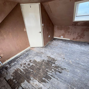 Damaged Plasterboard Replaced, Holes In Ceiling Infilled And Walls And Ceiling Plastered.